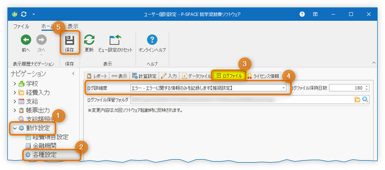 - エラーが発生する前に(今すぐ)「動作設定」「各種設定」「ログファイル」タブの順にクリックし、「ログ詳細度」を「エラー - エラーに関する情報のみを記録します【推奨設定】」にセットし、「保存」ボタンをクリックしてください。