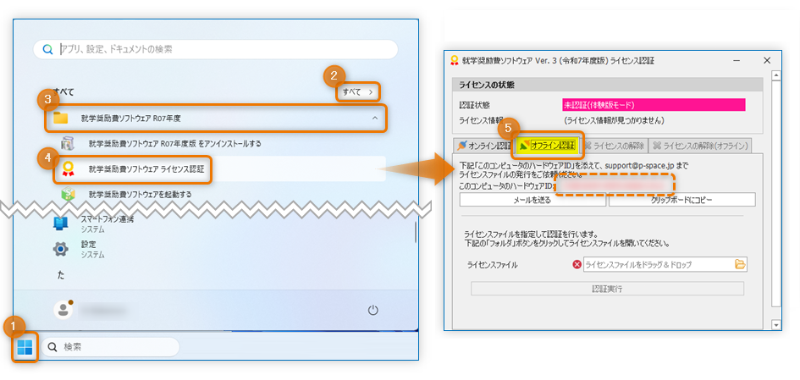 お手数をおかけしますが、もしもユーザーの皆様のお手元で同様な状況が生じましたら、ライセンス認証プログラムの「オフライン認証」タブに記載されるハードウェアIDを添えて、support@p-space.jp までご相談ください。